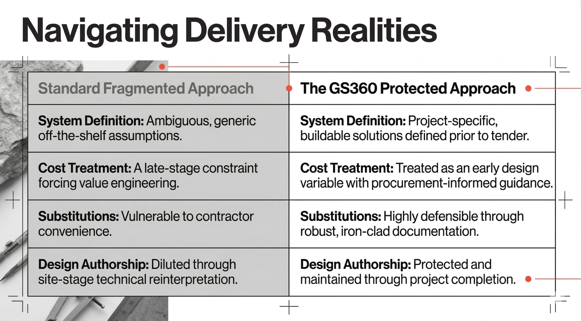 Stone should serve architecture, not dictate it. We help teams maintain design intent through technical development and delivery.